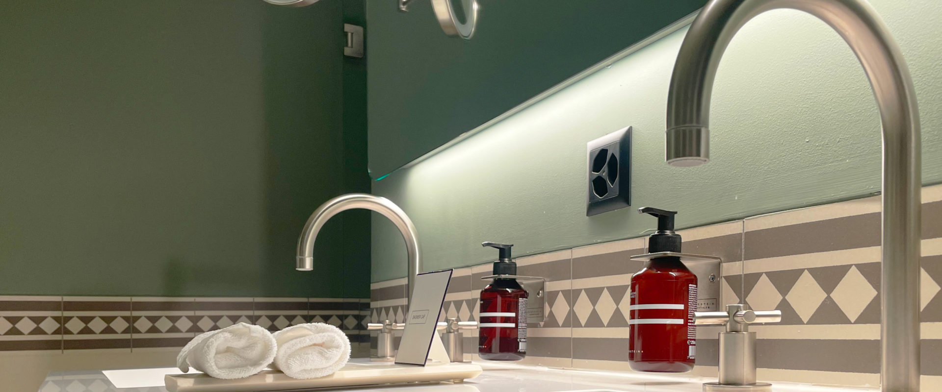 Das Farbkonzept in den Zimmern nimmt die florale Vielfalt früherer Zeiten auf und variiert von Gelb im Erdgeschoss, zu Rot im ersten Obergeschoss, zu Grün im dritten Obergeschoss und Blau im vierten Obergeschoss. In den Badezimmern setzt sich das Farbkonzept der Zimmeretagen fort und mit dekorativen Ornamentfliesen werden passende Akzente gesetzt. Bei der Möblierung und dem Einsatz der Textilien werden der Ursprungszeit entsprechende Stoffe und Motive gewählt, welche für ein stimmiges Ambiente sorgen, ohne aufdringlich zu wirken.