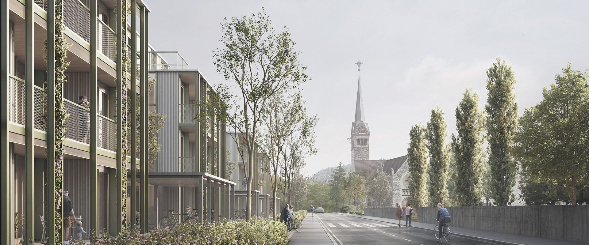 Der Beitrag von Neff Neumann Architekten AG und Antón Landschaft GmbH wurde vom Beurteilungsgremium, bestehend aus Fachexperten aus den Disziplinen Architektur, Städtebau und Freiraumplanung/Landschaftsarchitektur und Vertretern der Grundeigentümerin, einstimmig zur Weiterbearbeitung empfohlen. Die siegreiche Studie besticht durch die ortsbauliche Anordnung, die durchdachte Freiraumgestaltung und die Konzeption von unterschiedlichen Wohnungstypen, welche vielfältige Nutzungen zulassen und teilweise auch anpassbar sind an neue, zukünftige Wohnformen. Der Projektentwurf präsentiert sich als wirtschaftlich, ökologisch und sozial nachhaltigen Bebauungsvorschlag, der ein breites Spektrum von Bewohner-Bedürfnissen abdeckt, qualitätsvollen Lebensraum schafft und sich positiv auf die Ortsentwicklung auswirkt. Ein Überbauungskonzept mit einem stimmungsvollen, identitätsstiftenden Erscheinungsbild, einem vielfältigen Wohnangebot für unterschiedliche Bevölkerungsgruppen, Haushaltsstrukturen und Lebensformen; ein neuer Quartierbaustein mit grosszügig angelegten und vielseitig ausgestalteten Freiräumen, die ein attraktives Miteinander von gemeinschaftlichen und privaten Aussenräumen ermöglichen und zum Verweilen einladen.