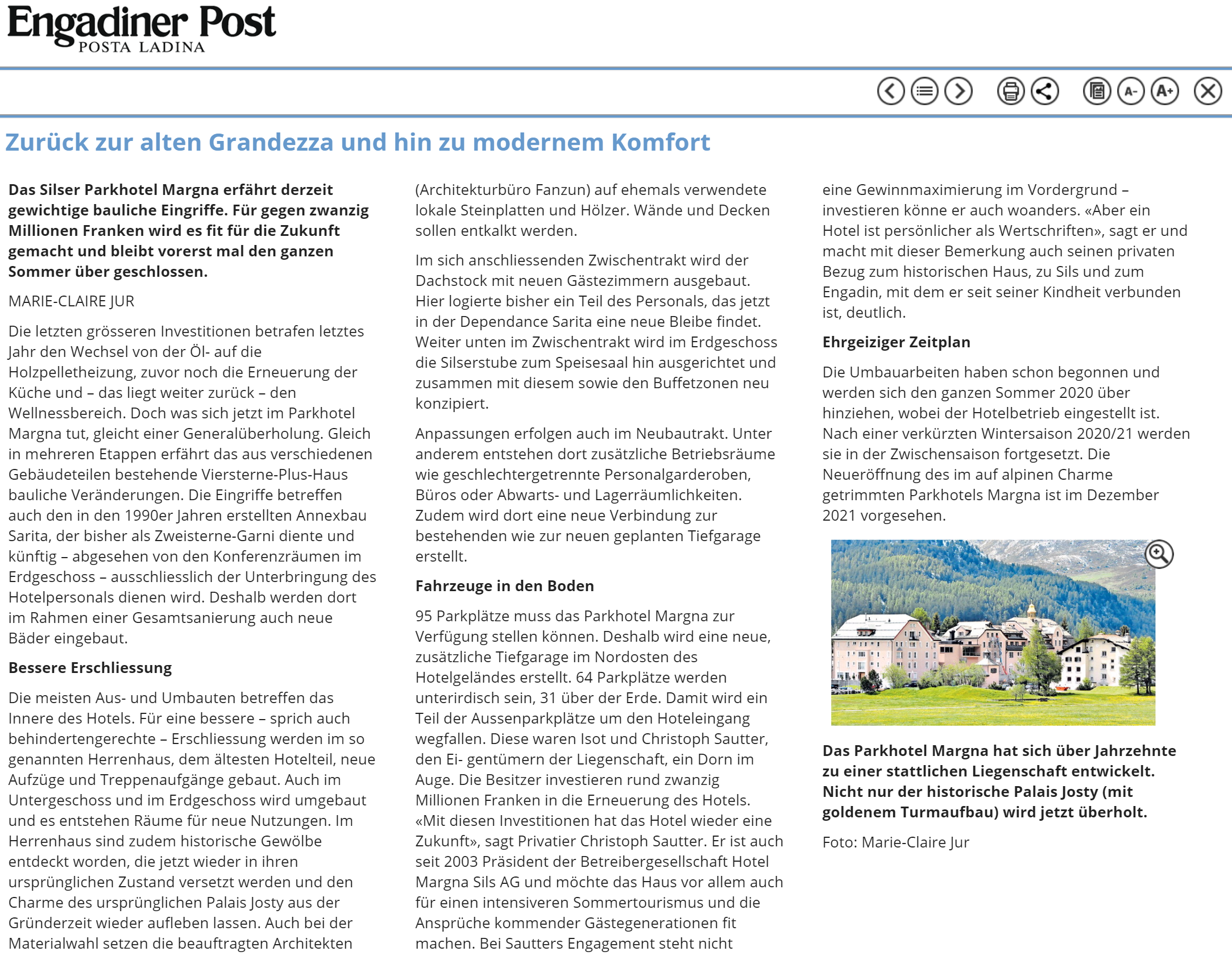 12/06/2020 Marie-Claire Jur Zurück zur alten Grandezza und hin zu modernem Komfort Engadiner Post Download